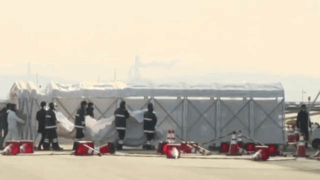 檢疫人員在日本“鑽石公主”號郵輪上工作
