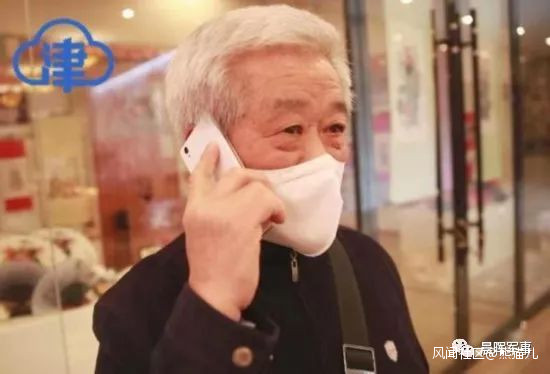 湖北籍遊客陳志堅老人正在與武漢的家人打電話報平安