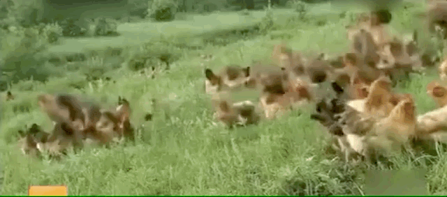 低矮的草原很適合雞這種小型生物奔跑、跳躍,切換姿勢叼蝗蟲。