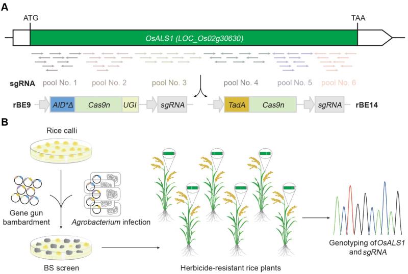 近日,中國農業科學院植物保護研究所周煥斌團隊提出並應用單鹼基編輯技術介導的植物內源基因定向進化技術,開發出具有除草劑抗性的水稻新種質,助力農作物精準分子育種。
