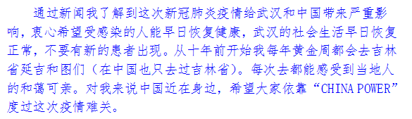 感謝您對中國人民抗擊新冠肺炎疫情所給予的關注、理解和支持。讀了您的來信,我和同事們都深受感動。