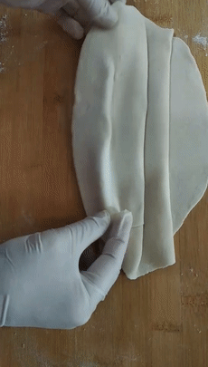 然後開始擠壓,逐漸壓出邊緣以及中間的褶皺部分: