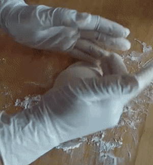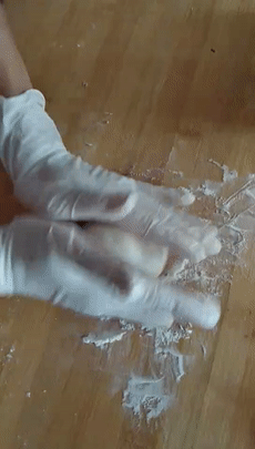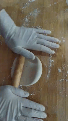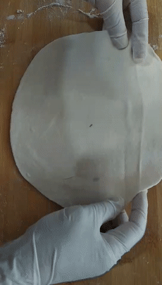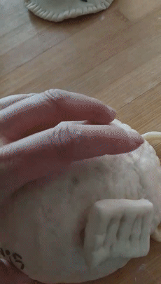 得到對應的材料後同樣最開始也是這種小麪糰,但這次不用擀它,而是一個螺旋丸起手式,直接盤就完事兒了,弄成一個半球體: