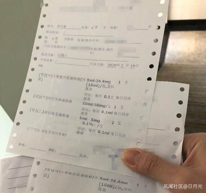 等了大概五分鐘,眼科醫生拿着一包藍色的外科口罩回來了,戴好護目鏡,準備給我看病。結果説話間護目鏡就上霧了,他讓我自己把眼皮扒拉下來,看看裏面什麼情況。