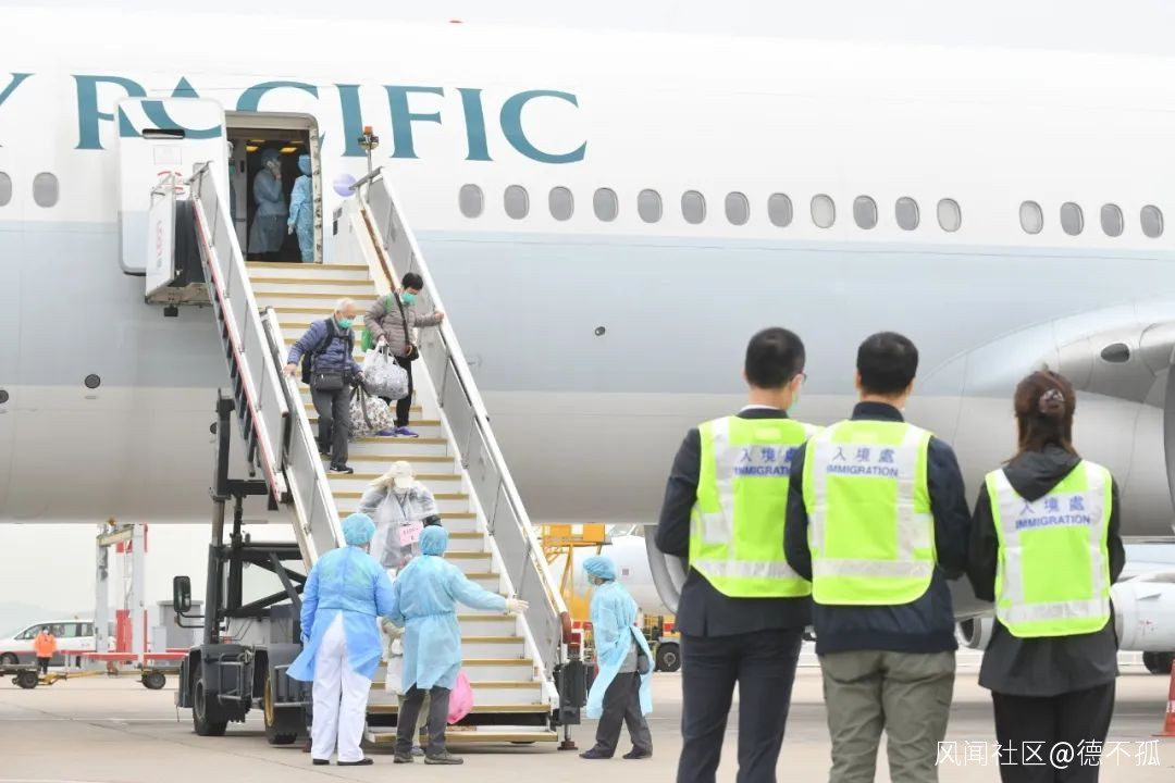 2月20日,接載滯留“鑽石公主”號郵輪香港居民的首架包機抵達香港。新華社發