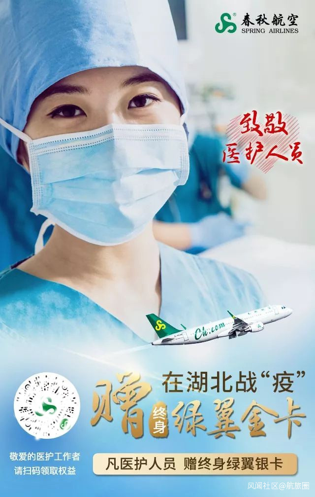 這是國內首個針對所有醫護人員送出終身金、銀卡權益的計劃。此前,廈門航空也宣佈推出**“白鷺馳援卡”**,由廈航、河北航、江西航承運的疫情期間支援湖北的醫護人員,將享受白鷺金卡的核心權益。