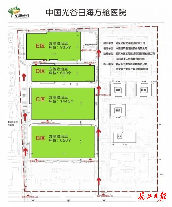 光穀日海“方艙醫院”項目位於藏龍島科技園慄廟路,利用武漢美聯集團所屬的原日海工業園廠房進行改造。廠區內現有4棟鋼結構廠房,總面積約5.4萬平方米。