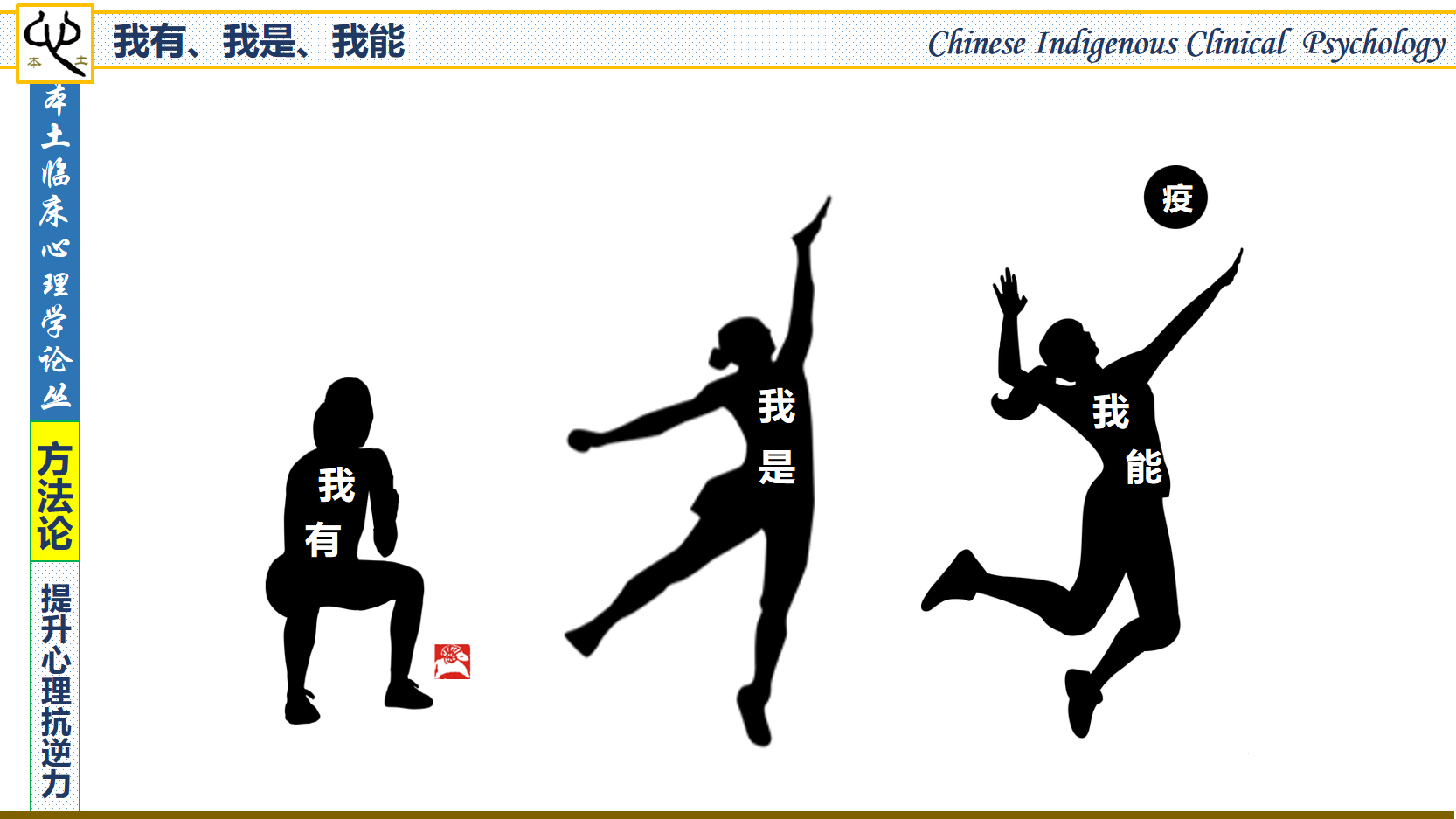 一個人在成長過程中可能被愛 (我有,I have),但是如果這個人缺少或沒有內在心志 (我是,I am),又或者沒有社交、人際交往能力 (我能, I can),這個人就不會有優質的抗逆力。