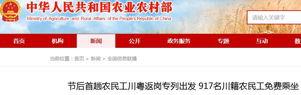 節後首趟農民工川粵返崗專列出發 917名川籍農民工免費乘坐_風聞