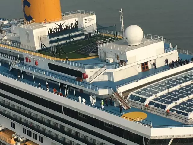 一切無虞!已經在海上停泊十幾個小時的“歌詩達賽琳娜號”終於可以進港,這艘承載着數千人安全和健康的郵輪駛向母港。
