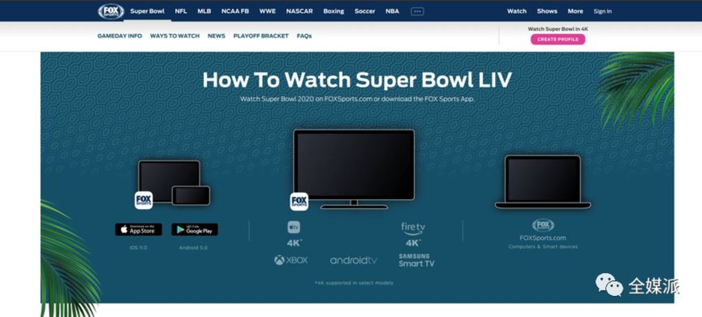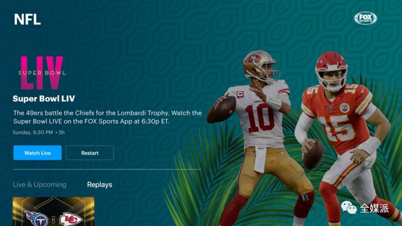 為適應不斷變化的受眾行為,Fox不僅在FoxSports.com上線了超級碗的入口,還在Fox Sports、Fox Now、NFL等流媒體常見的APP上也開放了權限。與前幾年不同的是,觀眾無需訂閲有線電視,消除了訂閲驗證的阻力,讓“剪線族”甚至“無線族”(cord-nevers)都能輕鬆免費觀看。