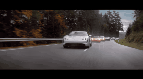 保時捷的廣告長達2分30秒,講述了一個汽車經銷商“搶劫”的故事,主推其新款車型Taycan EV。