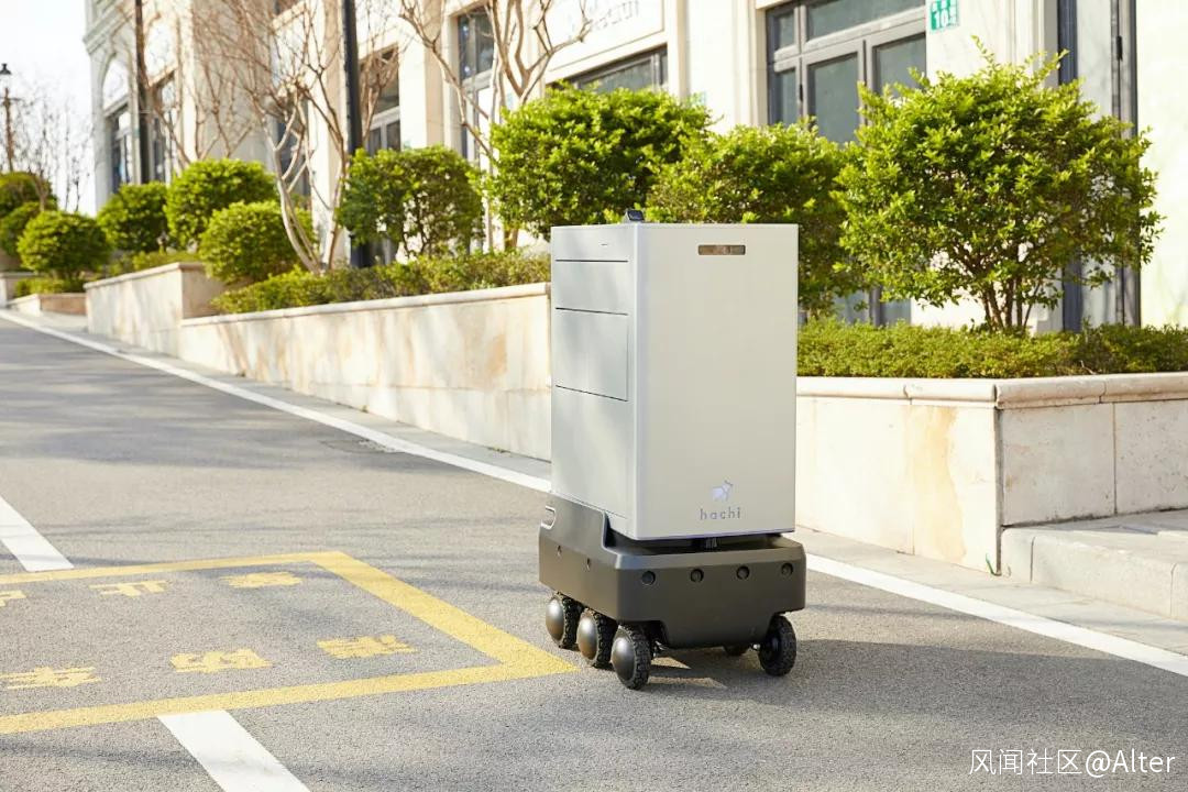 較於普通小區,廣州常春藤有實地社區自建的“種子集市”,在設立之初就採用了線上線下結合的模式,用户可以在小程序中直接下單;另一個是社區配套的智能物流機器人hachi delight,可以智能規劃路線、自動避障、乘坐電梯將貨物送到業主手中。