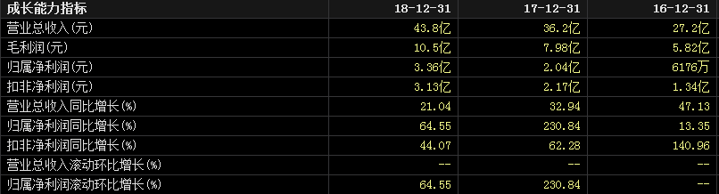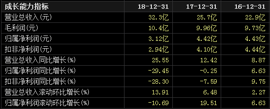 鴻合科技2019年前三季度實現營業收入35.32億元,同比增長4.90%;淨利潤2.45億元,同比下降15.69%;扣非淨利潤2.14億元,同比下降20.43%。雖然該公司2019年前三季度表現一般,但其2016-2018三年間營收、淨利潤增長的持續性較好。