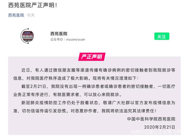 西苑醫院闢謠:截至目前院內沒有確診患者或確診患者的密接者2020年02月21日 18:55:15來源:北京日報客户端
