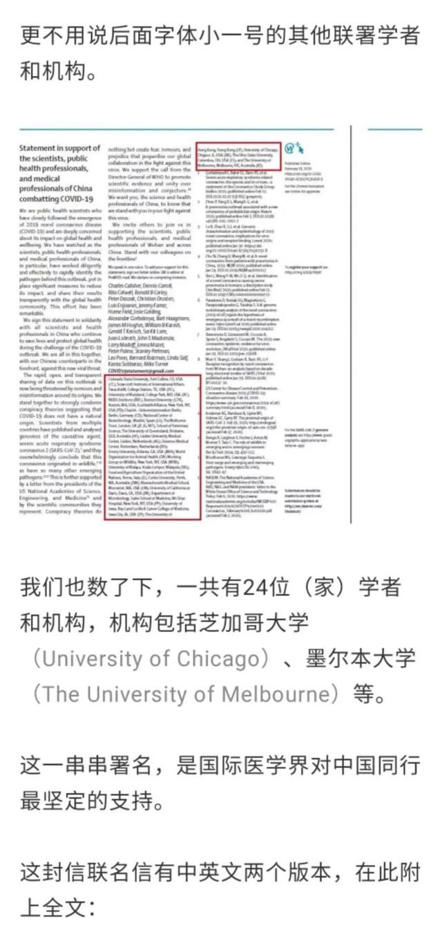 但當我們看到最新一期世界權威醫學期刊《柳葉刀》(The Lancet)發表的一篇國際醫學界大咖力挺中國同行的聯名聲明信時,我們還是被一些特別硬核、特別暖心的細節打動了。