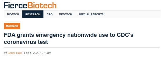 (美國Fierce Biotech網站:FDA緊急授權全國範圍內使用CDC的核酸檢測)