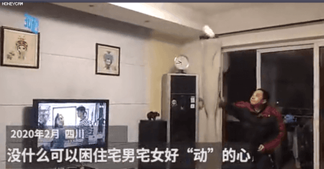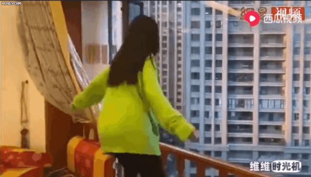 四川成都,一位小姐姐走到客廳落地窗前,突然“尬舞”。