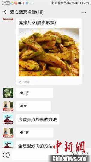 20日上午,楊勇立即在其所在的資陽“愛心蔬菜捐贈”微信羣裏,發起了為湖北老鄉錄製做菜教程的呼籲。他還特別囑咐:“最好是最具我們資陽資味的做法,他們在網上收集過一些做法,感覺不準確。”