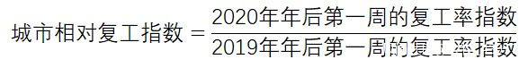 為了排除這一因素,我們再用每個城市的今年和去年做同期復工率比較,因此就有以下這個公式:
