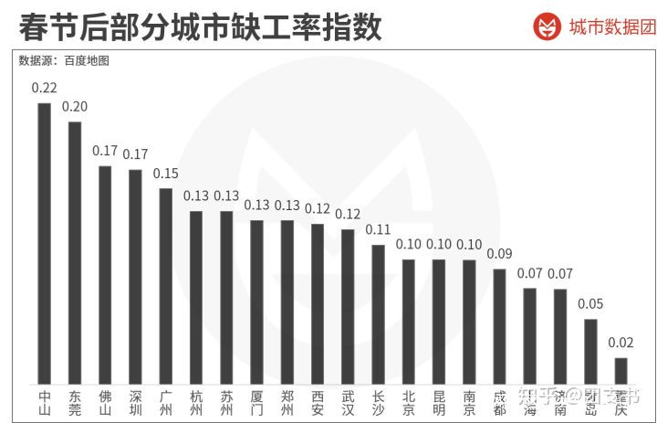 (説明:數據來源為百度地圖。缺工規模指數不等於實際缺工規模,但可以近似代表大體缺工的規模程度。)