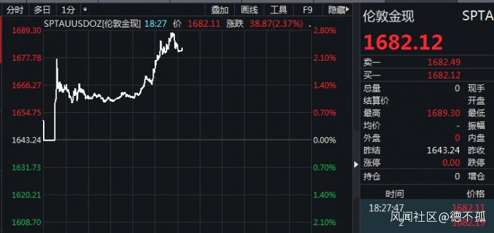 倫敦金現貨於17:37再次刷新了七年新高,目前升至1680美元/盎司一線。