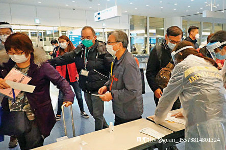入境處職員在東京羽田機場協助滯日港人登上第二班回港包機。(來源: 香港文匯網)