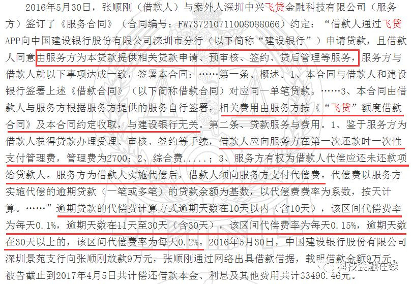 中國裁判文書網上的一則判決書揭示了飛貸與建設銀行之間的合作模式:
