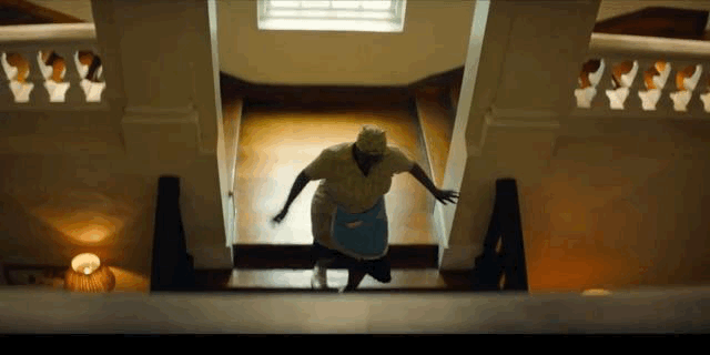 他艱難地走下樓,緊緊握着着樓梯扶手,就像是他生命最後的依靠。
