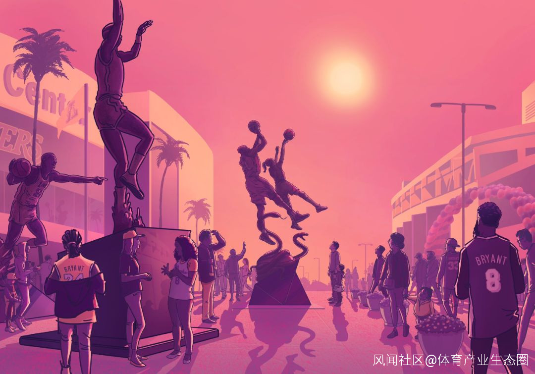 國外網友製作了一張科比和Gigi的雕像,佇立在斯台普斯中心外的圖片