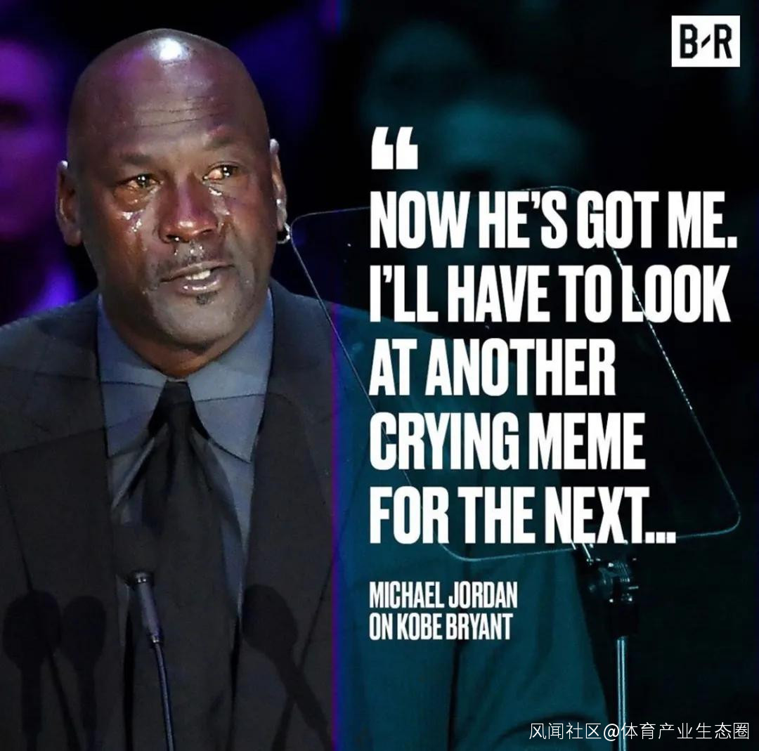 與瓦妮莎的剋制不同,作為科比早年間最想要超越的那個人,喬丹一上台便淚流滿面。為放鬆現場氣氛,他自己也打趣道,「今天過後,恐怕又要成為一個哭泣的表情包了。」