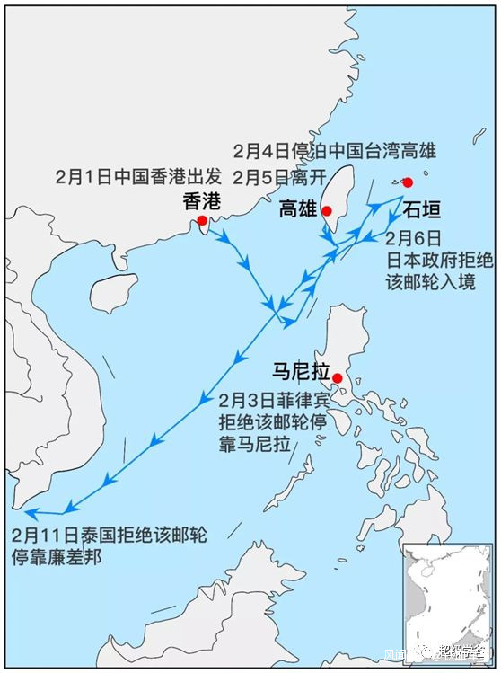 這時候,疫情正在發酵,2月3日郵輪計劃停靠菲律賓的馬尼拉時,遭到了拒絕。沒辦法,調頭前往中國台灣南部的高雄。