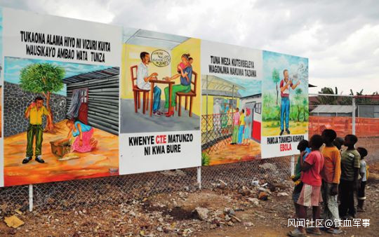 ▲ 2019年8月3日,剛果(金)戈馬,孩子們在看傳播預防埃博拉感染知識的宣傳畫