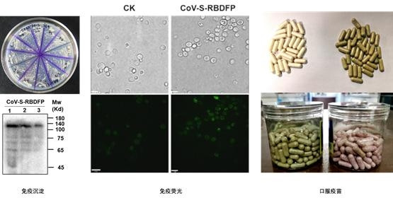 圖2 COVID-19 病毒RBD-FP域酵母疫苗株篩選及其口服制劑