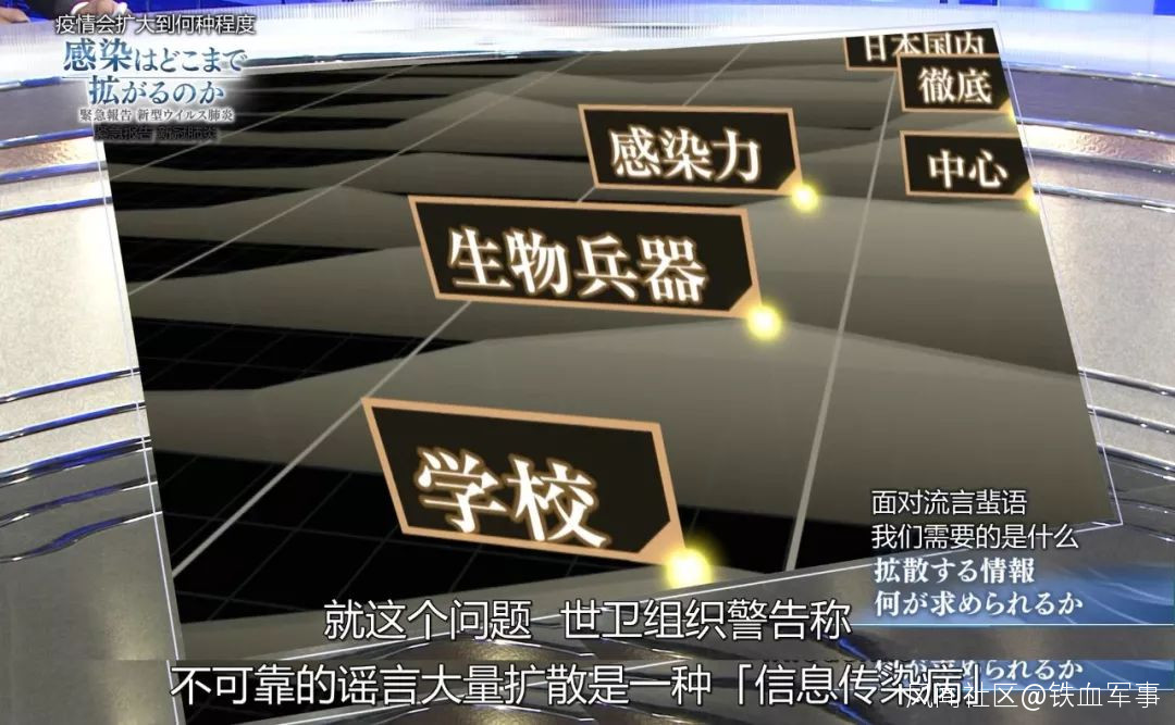 片中NHK對twitter上的搜索關鍵詞進行了量化分析,他們發現,自疫情出現後,不光在中國,在全球都有規模性“謠言”出現,比如“XX地失控”,和SARS如出一轍的“生化兵器”的陰謀論。