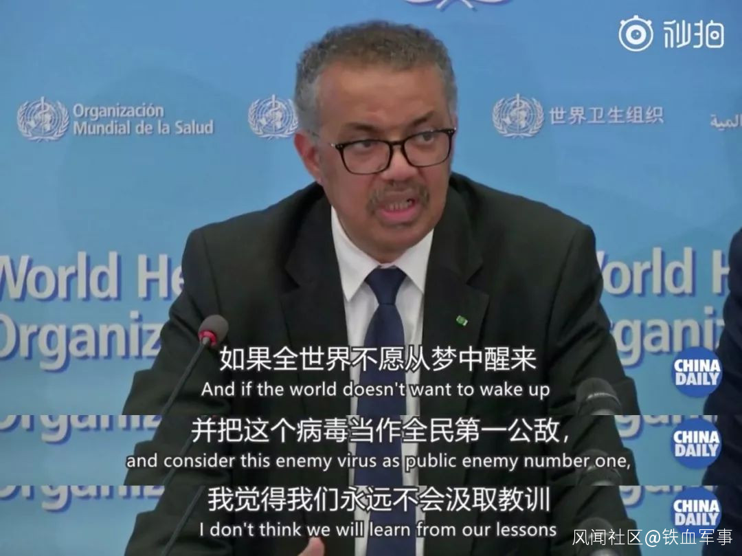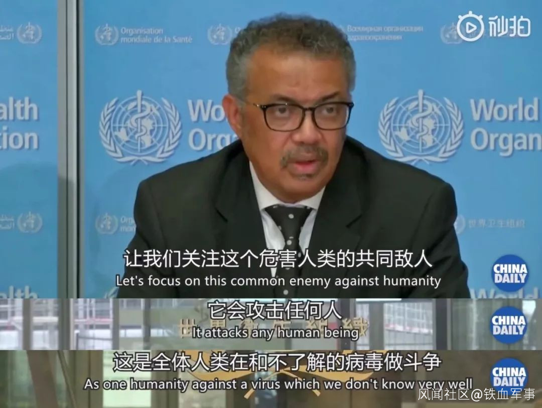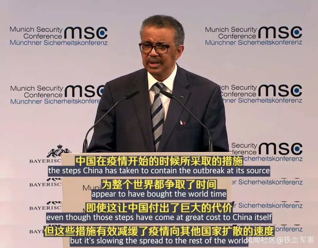 紀錄片播出十多天後,W.H.O.總幹事譚德賽在慕尼黑安全會議上説出了同樣的話:
