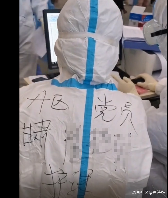 為什麼?因為他們一整天全穿着防護服和防護鏡,病人根本看不到他們的臉,也辨認不出他們。大家互相之間也無法辨認,怎麼辦呢,只能把名字職務全寫在防護服上。想象一下,一個醫生冒着生命危險救了你一命,你卻連他的臉都沒有見過。