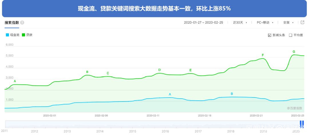 通過搜索大數據,我們發現很多企業對於現金流的擔憂和對貸款的需求。此次疫情受影響最大的就是中小企業,因為人員復工比例較低,且沒有足夠的現金流支持,讓中小企業在疫情中艱難運營,甚至結束後短期內回血都是困難重重。