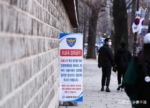 2月26日,在韓國首爾,街邊懸掛着政府禁止集會的海報。新華社記者 王婧嬙 攝