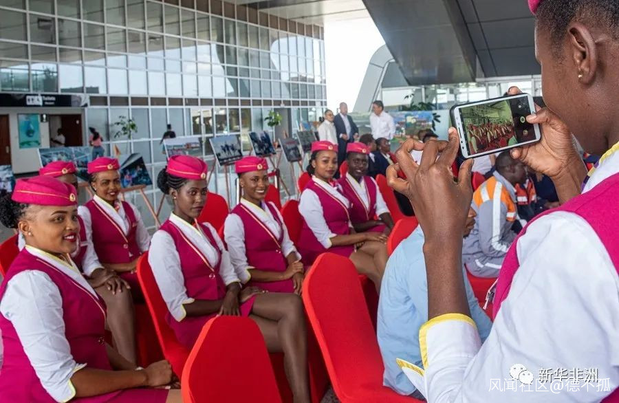 2月25日,在肯尼亞首都內羅畢,蒙內鐵路員工在蒙內鐵路安全運營1000天表彰會上合影留念。新華社記者 張宇攝