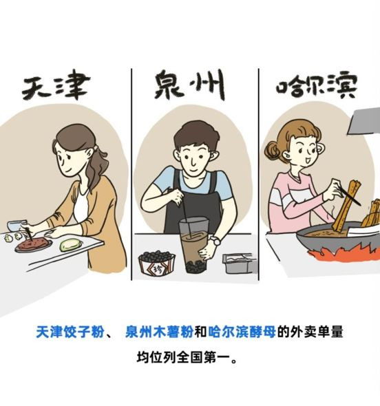 無疑,北方確實是吃麪大户,如天津人購買餃子粉的外賣單量位居全國第一、哈爾濱人購買酵母的外賣單量均位列全國第一;