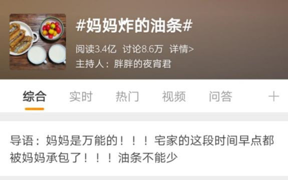 另一種可比肩涼皮的熱門自制美食是油條,不過由於油條對做飯新手而言難度稍大,網友們便把希望寄託在了萬能的母親身上,希望親媽贏得油條大戰!