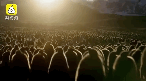 拍攝到大量帝企鵝俯身低頭的畫面。