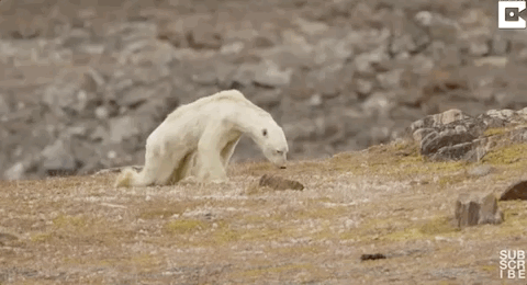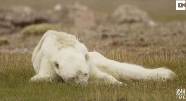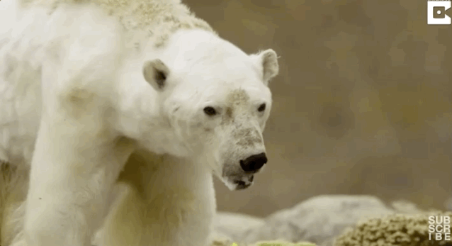 北極熊棲息的海冰日益縮減,生存越來越困難。