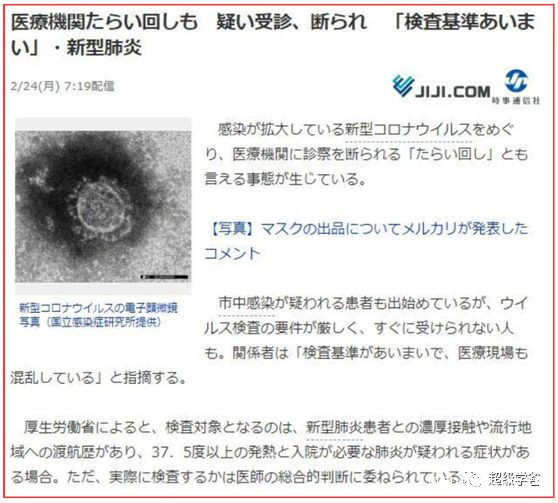 目前,日本的時事通信社勇敢地站出來,第一個發聲抨擊日本厚勞省的超嚴格檢測基準,導致了疑似患者檢測難、看病難,一線醫療機構互相推諉。