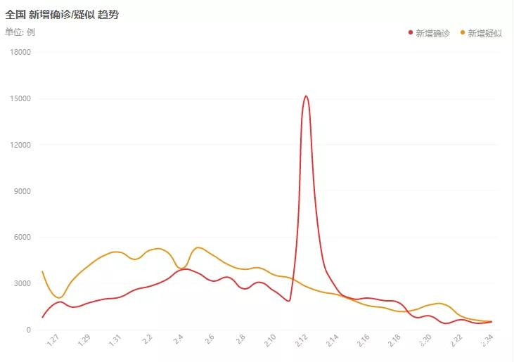 前期的疫情情況確實如此。特別是對於湖北重災區來説,2月18日以前,每天都有過千的新增確診病例,甚至還出現一天內上萬疑似病例同時確診的情況。疫情的蔓延速度超出了幾乎所有人的預料,人們對疫情嚴重度的評估自然也隨之提高。也可以説,正是這些有效的信息披露才遏制住很多非重點疫區的人們的“盲目樂觀”情緒,能夠更加主動地進行隔離防護。