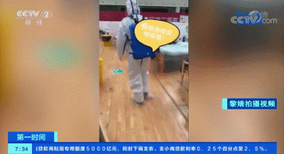 △保潔人員在噴灑消毒藥水