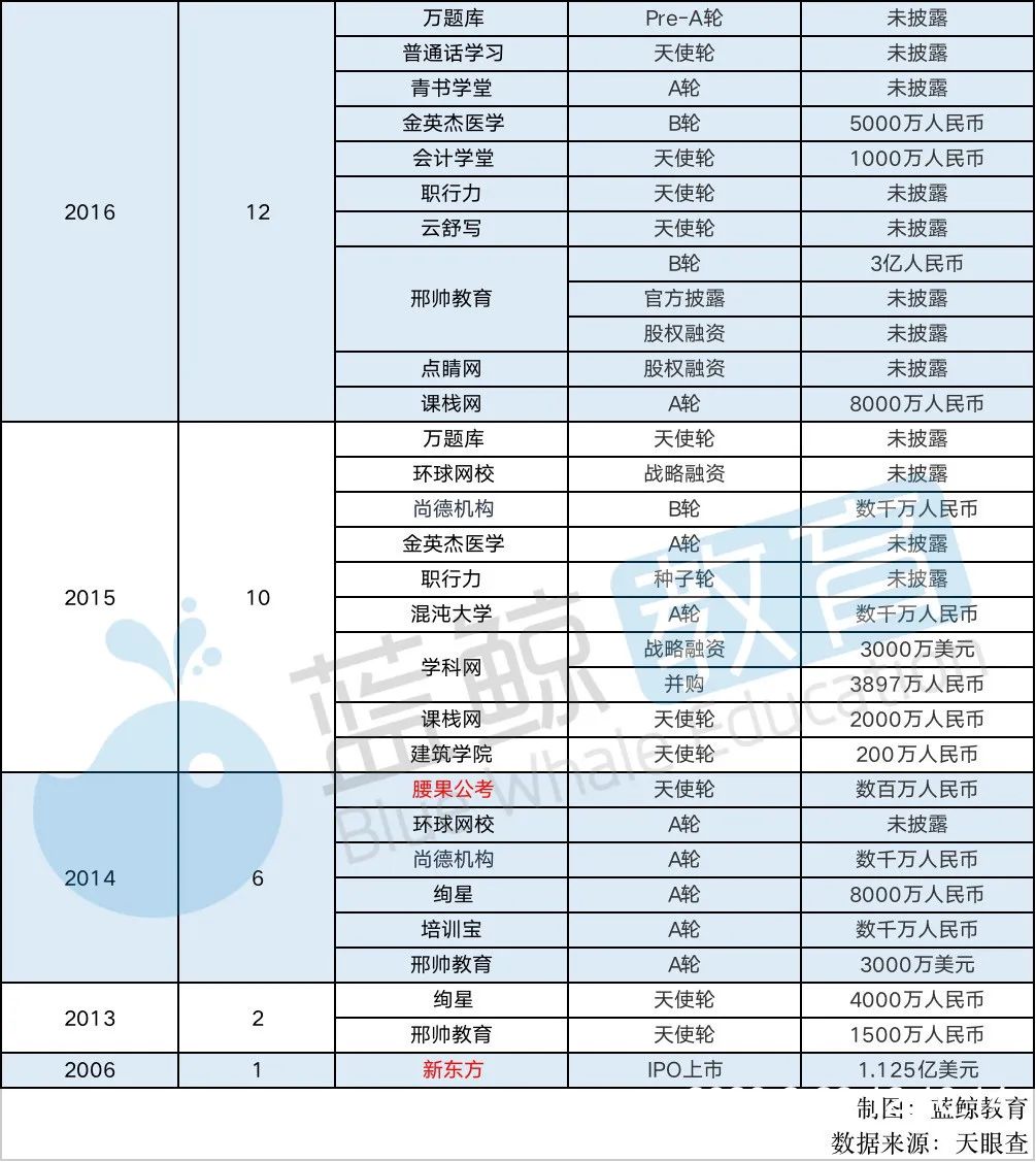 藍鯨教育智庫專注教育領域研究,將持續為您跟進教育領域各賽道的企業排名與資本動向。更多相關內容,敬請期待。