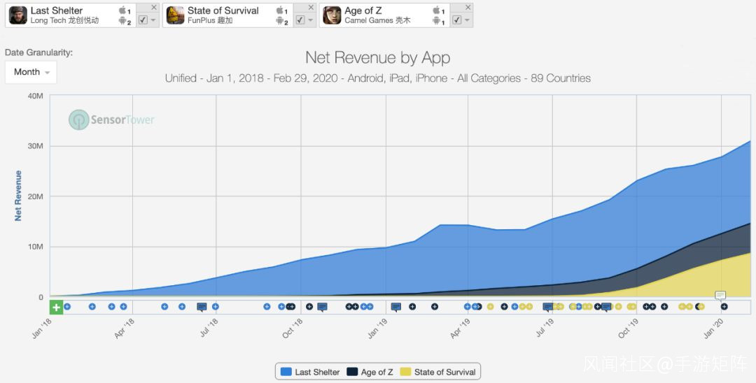 歐美手遊玩家青睞SLG,這已經是所有關注海外市場的人都知道的事兒。有趣的是,在2020年2月出海手遊收入榜上,新上榜的《Age of Z》與《State of Survival》、《守望黎明》一起共聚Top 30。