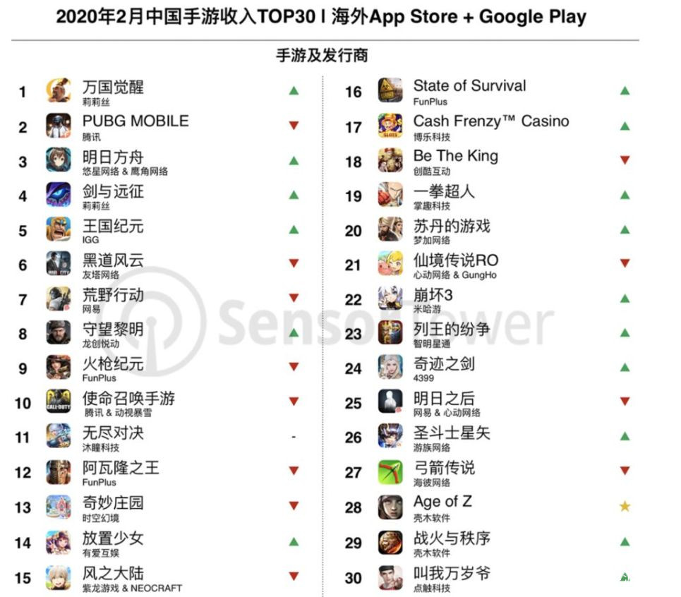 日前,Sensor Tower和APP Annie各自公佈了“2020年2月中國出海發行商收入榜”與“2020年2月成功出海的中國手遊收入TOP30”。其中雖然沒有新面孔,但依然給我們帶來不少新的啓示。